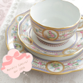 ********************************************* サロンにお越しくださるお客様の多くが、まず目を留めてくださるのが、ディスプレイに並ぶこちらのデザイン。 「エリザベート」と名付けられたこちらの作品は、なかなか出逢うことのできない特別な逸品です。 ヘレンドのミュージアムコレクションのひとつであり、元となったケーキスタンドが制作されたのは1860年代と言われています。 エリザベート皇妃が生きた時代に生まれ、彼女が愛したとされるスミレやパンジーが優雅に描かれたこのデザイン。 エリザベートの気品を思わせる、静かで優雅な美しさ。 淡く美しいパープルの色彩と、可憐な花々の装飾。 こちらはヘレンドの中でも最高ランクの一つに位置づけられるシリーズで、もちろんマスターペインターによる手描きの作品です。 今回は4月の限定マンスリースペシャルとして、トリオでとてもお得にお求めいただけますようご用意しております。 眺めて愛でても、手に取って使っても、思わずため息がこぼれるほどの美しさ。 ********************************************* (商品のサイズ) デザートプレート:直径約190mm *こちらの商品は一部金彩に僅かなムラ/滲みが見られる事があります。これはハンドメイドの製造過程中に生じるものであり、不良品ではございません。当店の商品はメーカー側の検品と合わせ、3度の検品が行われております。又、ハンドペイントの為、1点1点サブモチーフや風合いが多少異なります。ハンドメイドの良さとしてご理解頂いた上でお求め下さいますようお願い申し上げます。これらを理由に返品・交換は原則として承り兼ねますので、ご留意下さい。 AFTER エリザベート